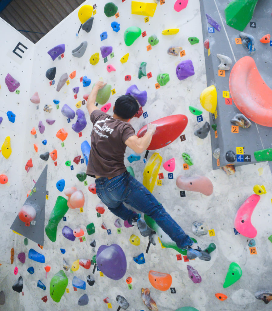 色とりどりのホールドと呼ばれる突起物を取り付けた人工壁を登るインドアクライミングも盛んになってきています。